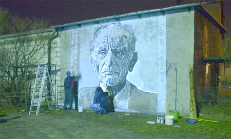 Głównym i co ciekawe nocnym wykonawcą murala był Batrosz Myślak, znany szczycieński artysta. Jednak i Arkadiusz Dziczek nie przyglądał się biernie. Również chwytał za pędzel, malując łatwiejsze fragmenty, jakby nie było, wielkoformatowego dzieła.