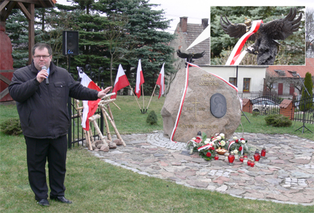 Z kolei wójt Sławomir Ambroziak podkreślał, że obelisk do tej pory miał wydźwięk pesymistyczny. - Teraz pojawił się na nim wznoszący orzeł – symbol naszej ojczyzny, która mimo takich tragedii potrafiła się podnieść do dalszego lotu – mówił wójt. Delegacja samorządu, na której czele stał, złożyła winiec pod obeliskiem, to samo uczynili przedstawiciele innych stowarzyszeń i organizacji. Obecna na uroczystości młodzież postawiła i zapaliła znicze w kolorach białym i czerwonym.