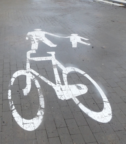 Taką polską tradycją (niekoniecznie piękną) jest zamykanie (bądź podejmowanie takich prób) inwestycji w okresie w zasadzie zimowym, gdy pogoda raczej mało sprzyja. Fachowcy powiedzą, że mamy przecież supernowoczesne technologie i wszystko da radę się zrobić. Dlaczego zatem czerwony w zamyśle przejazd dla rowerzystów nie jest już do końca czerwony, a znaczna część świeżo wymalowanych piktogramów w okolicach ronda i na ul. Piłsudskiego jest pościerana, a farba odchodzi nawet przy delikatnym dotknięciu butem? Naszym faworytem jest rower (chyba) ledwie widoczny na fot. 11.
