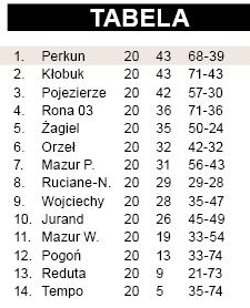 Perkun najpierw dokończył serię remisów w emocjonującym meczu z drużyną z Rucianego-Nidy, a potem na boisku rywala nie dał szans Tempu. Niepokonany na wiosnę zespół z Orzyn wykorzystał kolejne potknięcia dotychczasowego lidera z Prostek, porażkę Kłobuka i objął przodownictwo w tabeli.
