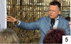 Kontakt słowny kandydata na prezydenta to także okazja do wsłuchania się na żywo w język, którym posługują się dziś nasze polityczne elity. Trochę trudno nazwać go parlamentarnym i gramatycznie poprawnym, choć jeszcze trudniej byłoby zarzucić Szymonowi Hołowni, że ma problemy z płynnością mówienia czy jakąś sceniczną tremą (fot. 5). Marszałek Sejmu mówił o tym, że Prezydent RP powinien od rana do wieczora „zapieprzać”, poruszał kwestie „syfu” w wybranych dziedzinach i „kiszenia się”. Używał konstrukcji „te wybory będą o”, którą trudno uznać za wzorcową. Podobnoż to, jak mówią niektórzy, wina Tuska. Właśnie na tego polityka wskazywał jeden z językoznawców, już w 2014 roku, gdy w poradni internetowej odpowiadał na pytanie miłośnika kultury języka zaniepokojonego tym sformułowaniem.