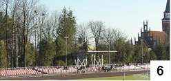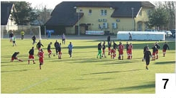 Praktycznie w tym samym czasie na mieszkańców Szczytna czekała kolejna atrakcja – mecz piłkarski pomiędzy reprezentacją Związku Miast Polskich, do którego należy Szczytno, a rezerwami szczycieńskiej Gwardii. Kiedyś spotkania z udziałem m.in. samorządowców przyciągały na stary stadion przy ul. Śląskiej prawdziwe tłumy, teraz na odnowionych trybunach zobaczyliśmy garstkę sympatyków (fot. 6). Część osób zrezygnowała z oglądania – choć mecz miał się rozpocząć o 16.00, to mniej więcej jedną połowę spotkania później na murawie wciąż trwała rozgrzewka (fot. 7). Ktoś nie dojechał na czas i stąd cały zamęt, który zdecydowanie popsuł efekt. A że piknikowych atrakcji towarzyszących spotkaniu nie widzieliśmy, to wyszło, jak wyszło. Przed spotkaniem odegrano nasz państwowy hymn, co w Szczytnie jest ewenementem, a opóźnienie meczu o niemal godzinę wymusiło wypróbowanie sztucznego oświetlenia. Spotkanie wygrali dość wysoko (4:1), dla wielu nieoczekiwanie, burmistrzowie i prezydenci, którzy najwyraźniej haratają nierzadko w gałę. Na listę strzelców wpisali się m.in. burmistrz Stefan Ochman, występujący z orzełkiem na piersi w drużynie Związku Miast Polskich, oraz Rafał Bałdyga prezesujący Gwardii Szczytno i występujący dość często w zespole rezerw.