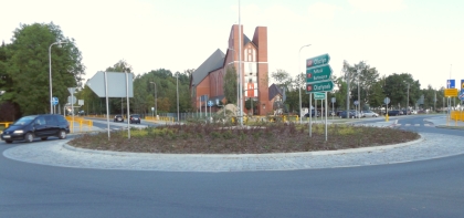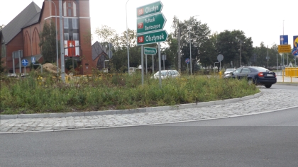 Skoro o rondach mowa, zajrzyjmy jeszcze w okolice ratusza, czyli tam, gdzie znajduje się najstarsze tego typu skrzyżowanie w mieście. Tu akurat gęstość nasadzeń jest taka, że chwasty nie mogą sobie pozwolić na wiele. Gorzej wygląda pofałdowany od lat asfalt – kiedyś chciano nawierzchnię poprawić, a wyszło, jak wyszło. Chcieliśmy się jednak skupić na tym, o czym pisaliśmy w ostatnich miesiącach – niemal w tym samym momencie poprawiono to, co szpeciło praktycznie centralny punkt miasta, a dodatkowo zagrażało bezpieczeństwu.