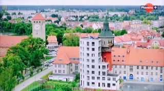 Było o surrealizmie, za chwilę o trochę innym kierunku sztuki. Należące do niego znane w Polsce dzieło możemy oglądać codziennie w naszym mieście. W sierpniu widzowie popularnego cyklu telewizyjnego „Polska z góry” mogli sobie z lotu ptaka obejrzeć m.in. Szczytno. Dron przygotowujący materiały dla kanału Planete + nadleciał nad zachodnie Mazury pod koniec trzeciej serii cyklu. W sezonie czwartym serii trwających niespełna pół godziny odcinków przyszedł czas na pozostałą część Mazur. Ciekawych i fotogenicznych miejsc w tej części Polski jest naprawdę dużo, ale filmowcy całkiem sporo uwagi poświęcili stolicy naszego powiatu. Po przedstawieniu Kanału Elbląskiego i Lidzbarska Warmińskiego (leżącego, jak nazwa wskazuje, w trochę innym historycznie regionie, choć naszym województwie) dron pokrążył nad Szczytnem. Co można było pokazać z góry? Oczywiście ruiny zamku (wraz z komentarzem odnoszącym się do Sienkiewiczowskich „Krzyżaków”), Wyższą Szkołę Policji i wieżę ciśnień stojącą w centrum miasta (fot. 10). Twórcy odcinka określili połączenie tego zabytku z mającą paręnaście lat przybudówką mianem czegoś abstrakcyjnego i wyrazili nadzieję, że wkrótce wieża zostanie pozbawiona owych dodatków. Podobnych komentarzy do stanu obiektów zabytkowych czy środowiska naturalnego naszego regionu było więcej, a filmowcy opowiedzieli się np. przeciwko gruntownej przebudowie drogi krajowej łączącej Olsztyn z Ełkiem. Nie da się ukryć, że takie niekoniecznie pozytywne przekształcenie środowiska (chociażby karczowanie w iluś miejscach lasów) wiązało się będzie z planowaną budową obwodnicy Szczytna.