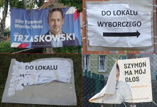 W połowie lipca niektórzy mówili o jeszcze jednej turze wyborów prezydenckich, ale odnosimy wrażenie, że temat już wygasł. Chyba jednak nie dla wszystkich. W myśl przepisów materiały wyborcze powinny poznikać miesiąc po wyborach (których drugą turę mieliśmy 12 lipca). Tu i ówdzie nie poznikały – tak było co najmniej jeszcze pod koniec minionego tygodnia. Na fot. 7 widać przykładowe sfatygowane już trochę banery i tablice kierujące do lokalu wyborczego, znajdujące się na ul. Chrobrego, siatce kortu tenisowego przy ul. Leyka oraz przy jednym z wjazdów do Korpel.