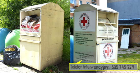 Przy ul. 3 Maja zaraz za apteką, w głębi międzyblokowego podwórza stoi pojemnik na używaną odzież, postawiony tam przez PCK. Do tegoż urządzenia kilka dni temu chciał włożyć zbędne ciuchy jeden z mieszkańców pobliskiego bloku. Niestety, otwór był zatkany odzieżą, że już nic wepchnąć się nie dało, a co więcej pod pojemnikiem stały także torby z ubraniami. - Co robić? - pyta Czytelnik.