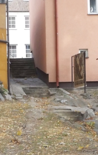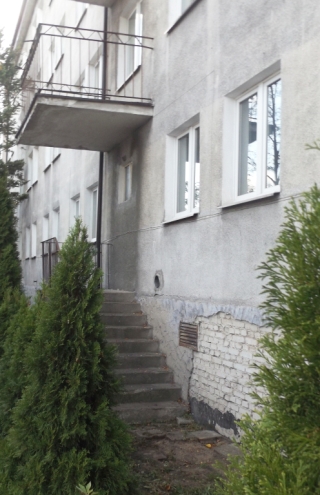 Różne legendy krążą na temat dawnych akademików na terenie szkoły jeszcze niepolicyjnej. Wiele osób słyszało zapewne historię o koniu wprowadzonym do bursy. Być może z powodu rozmaitych harców Dom Studencki został poddany przeróbkom i przypomina trochę obiekty z filmów Stanisława Barei. Ciekawie wyglądają balkony bez balustrady i braku możliwości wyjścia na nie z powodu zamurowania drzwi (okna są dodatkowo okratowane – fot. 8). Drzwi na balkon nie ma też od strony ul. Andersa. Wszystkie okna są tu jednak bez krat i osoba umiarkowanie wygimnastykowana może teoretycznie wyjść sobie pooddychać świeżym powietrzem (fot. 9). Poniżej mamy schody donikąd (fot. 10). Kiedyś było tam z pewnością dodatkowe wejście, dziś to miejsce może pełnić co najwyżej funkcję mównicy, choć widoczność z niej taka sobie.
