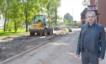 Niestety, gdy później spacerował po blokowisku zauważył, że prace ziemne trwają nadal. Tak było też prawie tydzień później, gdy zjawiliśmy się na miejscu. Ilustruje to kolejne zdjęcie, na którym w tle widać spycharkę i układacza krawężników
