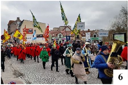 W minionym tygodniu orszaki przemaszerowały ulicami około 800 miejscowości Polski i świata. Nie da się ukryć, że tuż przed ogłoszeniem w Polsce pandemii, czyli w styczniu 2020 r. było ich więcej, w tym i naszym województwie. Niemała grupa ludzi zadała sobie trudu, by w miniony piątek przyciągnąć jeszcze liczniejszą grupę uczestników np. w Mrągowie (fot. 6) . Dla wierzących najważniejsze jest Dzieciątko, ale odpowiednią oprawę całości tworzył tam także udział orkiestry dętej czy obecność zwierzątek, budzących zaciekawienie maluchów (fot. 7). Być może znajdzie się ktoś, dzięki komu orszak wróci i do Szczytna.