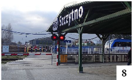 Na udostępnionym niedawno dworcu kolejowym w Szczytnie miejsce przeznaczone na kasę biletową jest co najmniej na razie zamknięte. To, trochę paradoksalnie, dla podróżnych rozwiązanie dość wygodne. Dlaczego? Nie trzeba przybywać na dworzec ze sporym wyprzedzeniem, by odstać swoje w kolejce i kupić bilet. „Kurek” pamięta z nieco odleglejszej przeszłości sytuacje, gdy przez megafon zapowiadano przyjazd pociągu, a ogonek wciąż był spory. W przypadku podróżnych wsiadających na stacjach z czynnymi kasami (kiedyś w naszym powiecie były one nie tylko w Szczytnie, ale i np. w Wielbarku, Pasymiu, Szymanach czy Kolonii) za zakupienie biletu w pociągu należała się dodatkowa opłata – i to wcale niemała. Tak zostało do dziś. Obecnie można przyjechać czy przyjść na dworzec niemal w ostatniej chwili, oszczędzić sporo czasu i za przyjemność nabycia biletu u konduktora nic nie płacić. Z tym przybywaniem na pociąg w ostatniej chwili może być jednak problem. Na szczycieńskiej stacji mijają się niekiedy pociągi. Zdarza się, że zamykane zostają wówczas zapory (fot. 8). Niedawno byliśmy świadkiem sytuacji, gdy na kilkadziesiąt sekund przed odjazdem dwóch szynobusów: z lotniska w Szymanach do Olsztyna oraz z Olsztyna do Ełku, na wyjście w stronę peronów wparowała grupka podróżnych. Akurat w tym momencie szlabany były zamknięte – właśnie po bliższym torze wjeżdżał pociąg z Olsztyna. Podróżni, narażając się na niebezpieczeństwo – lub na otrzymanie mandatu – przeszli pod zaporami. Kiedyś szlabany często miały pod spodem rodzaj siatki, który skutecznie utrudniał pieszym łamanie przepisów. Dziś zazwyczaj tego typu przejść i przejazdów już nie spotkamy.