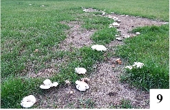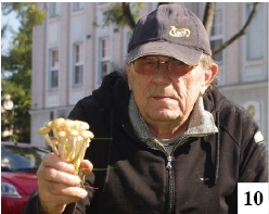 Przed tygodniem pisaliśmy, że tegoroczna susza niekorzystnie wpłynęła i wpływa na zbiory grzybów. Słodsze owoce lasu, czyli jagody, poziomki, maliny czy jeżyny jakoś się pojawiły w terminie (lub z lekkim poślizgiem), ale z grzybami był i jest większy problem. Niżej podpisany miał niemal całkowitą pewność, że w momencie, gdy poprzedni numer „Kurka” będzie w sprzedaży, tekst dotyczący grzybowej posuchy straci już całkowicie na aktualności – wszak konkretnie popadało. Powodem były także radosne internetowe wpisy grzybiarzy i własne obserwacje poczynione nawet w strefie miejskiej. W parku przy ul. Pasymskiej wyrosła cała zakręcona ścieżka sporych białych grzybów z rodzaju mleczajów (fot. 9) , w innej części miasta, w pobliżu Zespołu Szkół nr 2, nasz Czytelnik, pan Stanisław Nowotka, znalazł całe stado opieniek (fot. 10), o czym nam doniósł. Handlarze pojawili się na szczycieńskim rynku i przy niektórych drogach.