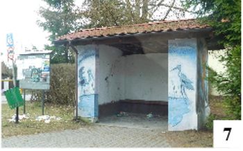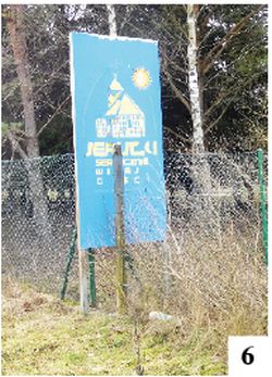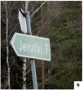 Na północ od wioski, bliżej jeziora, wybudowano domki letniskowe – części z nich nadano nazwę osiedle Barbara (fot. 5) . Sadyb w innych miejscach przybywa. Jerutki mają nawet swoje witacze. Jeden z nich zobaczymy, wjeżdżając od strony Szczytna. Nieco dziwnie umiejscowiony jest inny, ten od strony północnej, czyli wspomnianego osiedla, przez które przejedziemy tylko drogami gruntowymi. Tablica jest ponadto trochę zużyta i częściowo zasłonięta ( fot. 6 ). Gdy ruszymy z Jerutek w kierunku Szczytna, na głównym skrzyżowaniu zobaczymy jeszcze przystanek autobusowy przywołujący mazurskie