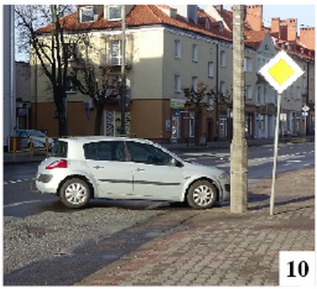 Niedzielne przedpołudnia stanowią nader często okazję do oglądania dość dziwnych widoków na wspominanej ul. Odrodzenia. A to zobaczymy samochody zabrudzone do granic możliwości ptasimi odchodami, a to na jakiś pojazd ktoś wysypie zawartość pobliskich kwietników. W minioną niedzielę zaskoczeniem szczególnie dla kierowców jadących od strony skrzyżowania ze światłami był samochód na mazowieckich tablicach. Na pozór wyglądało na to, że kierujący chciał zaparkować pod odpowiednim kątem (fot. 10). Szkopuł w tym, że żadnego kierującego nie było – pojazd albo zjechał, albo został w taki dziwny sposób zaparkowany na prawym pasie. I to wszystko na głównej ulicy miasta, na której teoretycznie do takich dziwnych zdarzeń dochodzić nie powinno…{/akeebasubs}