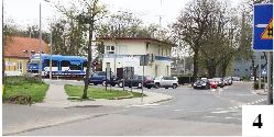 Pomysł wart rozważenia, ale jakoś powątpiewamy w jego realizację. Kawałek dalej jest zakręt o dość dziwnym profilu (przy samej krawędzi jezdni stoi kolejny inteligentnie umieszczony słup), co utrudniłoby sprawę. Jadącym ul. Chrobrego i widzącym sznur samochodów pozostaje przewidzieć sytuację, zawrócić na nieodległym parkingu (fot. 6) i pojechać którąś z równoległych ulic. Analogiczne problemy mają np. jadący ul. Warszawską i zamierzający skręcić przed przejazdem.