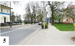 Wśród problemów zwracających uwagę naszych Czytelników poczesne miejsce zajmuje skrzyżowanie tuż przy głównym przejeździe kolejowym w Szczytnie. Planowane było tu rondo, ale do jego powstania w najbliższym czasie raczej nie dojdzie. Problem w tym miejscu powstaje zwłaszcza w momentach zamknięcia przejazdu i tuż po otwarciu szlabanu. W tym drugim przypadku kierowcy z ulic podporządkowanych (Chrobrego, Kolejowa) muszą odczekać niekiedy długie minuty, zanim będą mogli się włączyć do ruchu – sznurek przejeżdżających przez przejazd ciągnie się (zwłaszcza w sezonie) od skrzyżowania ze światłami (które niekiedy też jest z tego powodu blokowane) aż do okolic szpitala. Przypadek pierwszy dotyczy zmotoryzowanych, którzy nie są zainteresowani pokonywaniem przejazdu, a chcą np. z ul. Chrobrego wjechać w Kolejową czy Warszawską. Teoretycznie jest to wykonalne, ale kłóci się z przepisami. Na odcinkach obu ulic w rejonie skrzyżowania pociągnięta jest podwójna ciągła, a do tego dochodzą jeszcze przejścia dla pieszych (fot.4) . Mimo tego nie brakuje śmiałków omijających stojące pojazdy i przejeżdżających przez skrzyżowanie przy zamkniętym przejeździe. Gdyby policja stała tu jeszcze częściej, wystawiałaby mandaty na potęgę – o ile kierowcy nie doszliby do wniosku, że jednak łamać przepisów nie warto. Jeden z naszych Czytelników postuluje, by zastanowić się nad delikatną przebudową odcinka ul. Chrobrego i wytyczeniem tu trzeciego pasa. Można byłoby w tym celu wykarczować rosnące od parudziesięciu lat krzaki oddzielające jezdnię od chodnika. Jak widać na fot. 5 , należałoby przesunąć także słup, a chodnik poprowadzić po drugiej stronie rosnących tu wciąż jeszcze kasztanów. Choć ulica jest tutaj dość szeroka, sam pas po żywopłocie by nie wystarczył.