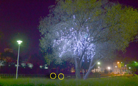 Jak wspomnieliśmy, mamy już jesień. Mimo to ciągle przy plaży miejskiej setkami światełek mieni się wierzba, którą nazwaliśmy drzewkiem szczęścia. Jest to bodaj ostatni w mieście znak-wspomnienie minionego lata, przyciągający właśnie zakochanych. Trzeba obiektywnie przyznać, że po zmierzchu nadaje ono okolicy sporo uroku i aury tajemniczości. Spacerując późnym wieczorem w miniony poniedziałek, zauważyliśmy kilka par siedzących na pobliskich ławeczkach.