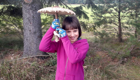 Mieszka w Szczytnie rodzina Borowików. Jakoś tak się stało, że dopiero niedawno jej członkowie wybrali się do lasu na grzyby. Jeśli chodzi o borowiki, to nie znaleźli ich dużo, ale za to trafili na całe stado okazałych, żeby nie powiedzieć ogromnych kań, zwanych też sowami. Rosły one w lesie między Nowinami i Saskiem Małym. Wszystkie okazy były zdrowe, a największego grzyba o kapeluszu ponad 30-centymetrowej średnicy dostrzegł tata i jednocześnie córeczka Magda, której służył potem za parasol.