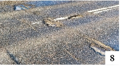 Trwająca wciąż – co najmniej w kalendarzu – zima wyjątkowo negatywnie wpływa na stan wielu dróg. Wahania temperatury łączą się z nie zawsze najlepszą jakością nawierzchni i efekt mamy taki jak np. na ul. Mrongowiusza, czyli początku drogi wojewódzkiej prowadzącej do Mrągowa. Blisko krawędzi jezdni dziura na dziurze i dalej też dziura (fot. 6). Niekoniecznie lepiej wyglądają także niektóre odcinki dróg wyższej kategorii, bo krajowych. Dwadzieścia lat temu pachniał nowością fragment DK 58 między Korpelami i Dzierzkami. Teraz trasa ta wygląda jak przed ówczesnym remontem, czyli kiepsko. Pewne obawy budzi stan niedokończonej jeszcze formalnie ul. Bohaterów Westerplatte. Jej remont rozpoczął się niekoniecznie w dobrym momencie. Drogowców zaskoczył pierwszy, czyli listopadowy atak zimy i wkrótce roboty stanęły, choć termin zakończenia prac teoretycznie minął. Asfalt wokół niektórych studzienek kanalizacyjnych jest popękany (fot. 7).