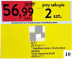 W poprzednim numerze pisaliśmy o swoistej promocji pewnego mocnego trunku w jednym ze szczycieńskich marketów. Do redakcji zgłosiła się pani kierowniczka, uściślając, że cena podana u góry wywieszki, tylko niewiele niższa od tej po lewej stronie, odnosi się do najkorzystniejszej dla klientów ceny z okresu 30 dni przed rozpoczęciem promocji. Cena regularna jest o paręnaście złotych wyższa (fot. 10) . Nakaz umieszczania cen sprzed miesiąca obowiązuje od ubiegłego roku, a dyrektywa miała pozytywnie wpłynąć na świadomość konsumencką. Czy tak jest faktycznie?