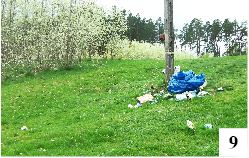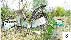 Zupełnie innego typu plaża od lat funkcjonuje w Wałpuszu. Po zamknięciu ośrodka Cicha Polana stała się ona ewidentnie dzika. W połowie minionej dekady teren wykupiono, miał tu powstać wysokiej klasy hotel, ale na planach się skończyło. Parę lat wstecz przeprowadzono licytację komorniczą, były ośrodek znalazł kolejnego właściciela, ale efekty na razie nie są specjalnie widoczne. Całość zarasta, wiosną wygląda to nawet urokliwie (fot. 7) i dodaje kompleksowi pewnej tajemniczości. Jeden z naszych Czytelników zgłosił nam ostatnio, że rozpadł się hangar stojący na brzegu w pobliżu plaży. Wyglądu tego miejsca niewątpliwie to nie poprawia (fot. 8). Na dodatek wody jeziora wciągają powoli śmieci znajdujące się w zniszczonym budynku. Śmieci nie brak także w przepełnionych workach umieszczonych na samej plaży (fot. 9).