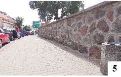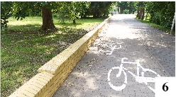 Znacznie niższy jest murek znajdujący się przy ścieżce pieszo-rowerowej pomiędzy mostkiem na kanale i browarem (fot.6). Nawiązuje on stylistycznie do murków stanowiących granice klombów w pobliżu miejskiej plaży. Do czego jednak rzeczony murek służy – trudno powiedzieć. Nie oddziela miejsc znajdujących się na różnych wysokościach, nie zabezpiecza przed osuwającą się ziemią. Korzystają z niego przede wszystkim miłośnicy mocniejszych trunków. Miejsce jest lekko na uboczu, zacienione, dlaczego więc nie skorzystać z okazji i nie przysiąść?