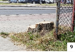 Alkohol nie jest raczej degustowany na innym murku, chyba najmniej estetycznym ze wszystkich. Znajduje się on przy ul. Pasymskiej. Przed laty ciągnął się on na większej długości, teraz zostały z niego resztki – i to wyglądające marnie (fot. 8) . A Pasymska jest przecież jedną z naszych najbardziej ruchliwych ulic, zwłaszcza w sezonie.