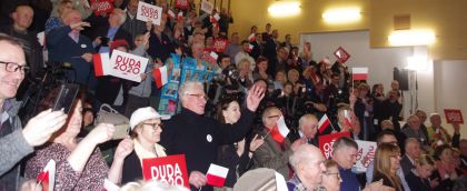 Andrzej Duda zapowiedział kontynuowanie wsparcia dla rodzin w postaci prospołecznej polityki, programów 500+, 300+, podnoszenia świadczeń dla emerytów i rencistów. - Wszystko, co służy polskiemu społeczeństwu, ochronie rodziny, naszej tradycji i wartościom będzie dla mnie jednym z najważniejszych wskazań, którym będę się kierował w swoim działaniu – zapowiadał. Następnie zaapelował do zebranych o wsparcie i mobilizację. - Majowe wybory trzeba wygrać, najlepiej zdecydowanie – podkreślał.