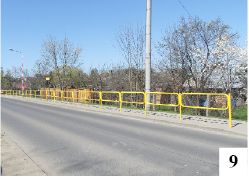 Jeśli komuś nie podobają się żółte barierki odgradzające w iluś miejscach Szczytna chodniki od jezdni (najczęściej dróg krajowych), będzie musiał polubić także żółte barierki, które ustawiono niedawno na ul. Kochanowskiego. Ciągną się one na odcinku blisko 200 m, od wejścia do parku przy Szkole Podstawowej nr 3 niemal aż do przejazdu kolejowego (fot. 9). Dzieciaki wracające do domu nie będą teraz dla zabawy wybiegały na jezdnię, ale i tak wąski chodnik stał się jeszcze węższy i w przypadku nieco szerszym tornistrów lub plecaków może być problem z mijaniem…