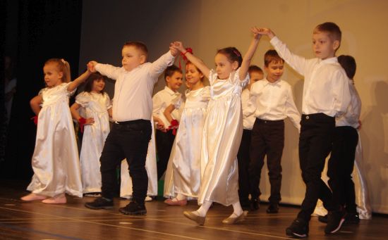 Po części oficjalnej sceną zawładnęły dzieci. Pod okiem swoich wychowawczyń zaprezentowały program artystyczny, ujmując publiczność naturalnością i swobodą. Wrażenie na widzach zrobił m.in. polonez do muzyki Wojciecha Kilara z „Pana Tadeusza” oraz taniec dżentelmenów, gdzie jednym z rekwizytów były egzemplarze „Kurka”. Sympatycznym akcentem były też występy absolwentów przedszkola, którzy zaprezentowali swoje muzyczne talenty. Na zakończenie mali wykonawcy, ich wychowawczynie oraz zaproszeni goście odśpiewali „hymn” przedszkola – piosenkę znaną z „Akademii Pana Kleksa” „Witajcie w naszej bajce”. W holu MDK-u na wszystkich czekał też słodki poczęstunek.