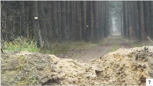 Ciekawość ciekawością, ale po drugiej stronie toru znaki na drzewach (jaśniejsze miejsca po lewej stronie) wciąż widnieją… (fot. 7).