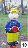 Na przełomie marca i kwietnia przy wejściu na orlik przy ul. Klenczona stanął hydrant, który zirytował sporą część mieszkańców. Urządzeniu zarzucano chociażby kiczowatość. Podobne niestandardowe hydranty już parę lat temu widywaliśmy w różnych miejscowościach naszego województwa i traktowaliśmy to jako ciekawostkę, która nie musi wyzwalać negatywnych emocji. Ten sam model przykuł naszą uwagę np. w Iławie. Być może byłoby lepiej, gdyby takowe urządzenia zgrać jakoś z historią i charakterem miasta, ale tu potrzebny byłby projektant, wzrosłyby koszty itd. Niżej podpisanemu podobne hydranty nawet się podobają. Jeszcze przed świętami urządzenie doczekało się swojego bliźniaka. Drugi hydrant z serii zainstalowany został stosunkowo blisko – przy jednym z zejść nad Jezioro Domowe Małe. Kolorystycznie wpisuje się on w dobór barw murala zdobiącego ściany pobliskiego aresztu (fot. 10) . Ów mural też nie wszystkim przypadł do gustu, ale to już inna sprawa.