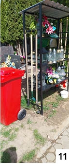 Niedawno wspominaliśmy o ubytkach sprzętu przeznaczonego do pielęgnacji grobów na szczycieńskim cmentarzu. Z wieszaków poznikała część mioteł itd. Ostatnio braki zostały uzupełnione (fot. 11) . Mamy nadzieję, że osoby korzystające za darmo ze sprzętu nie potraktują go jako własny lub nie uznają dobra wspólnego za rzecz, którą można bez skrupułów zniszczyć.