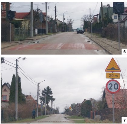 Progi zwalniające, nazywane potocznie śpiącymi policjantami, pojawiają się w różnych miejscach naszego powiatu coraz częściej. Niedawno zainstalowano je na odnowionej Bartnej Stronie, w miniony weekend widzieliśmy je na ul. Osiedleńczej. Znajdują się one w miejscu z gatao obu stronach skrzyżowania z ulicą Partyzantów. Tam, gdzie jeżdżą autobusy ZKM, zamontowano próg większy (fot. 6) , z ograniczeniem prędkości do 30 km/h, a na odcinku prowadzącym w stronę ul. Gnieźnieńskiej – próg mniejszy (fot. 7).