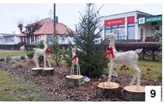 W ubiegłych latach wydawaliśmy ostatni w roku numer „Kurka” na krótko przed Bożym Narodzeniem i tej procedury wciąż się trzymamy. Świąt już z wiadomych powodów nie podsumujemy. Niech będą one pełne radości, a jeśli nawet przyjdą mrozy i spadnie śnieg – pełne także ciepła domowego ogniska. Już chyba wszystkie samorządy zadbały o odpowiedni wystrój głównych części stolic gmin. Na koniec pokazujemy to, co zobaczą przejeżdżający przez Rozogi (fot. 8, 9.). Pomysły i wykonanie inne niż np. z Szczytnie. Wieczorem na choinkach w centrum Rozóg błyszczą światełka. Chętni, jeśli trochę zejdą czy zjadą z głównej drogi, mogą zobaczyć żywą szopkę.