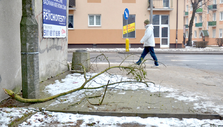 Niestety, myliliśmy się. Mija już prawie miesiąc, a gałąź jak leżała tak leży, tyle że zmieniła nieco swoją lokalizację. Z zatoczki parkingowej ktoś ją przesunął na chodnik. Teraz zamiast samochodom, tarasuje drogę pieszym. Może w końcu służby porządkowe zdołają ją usunąć?