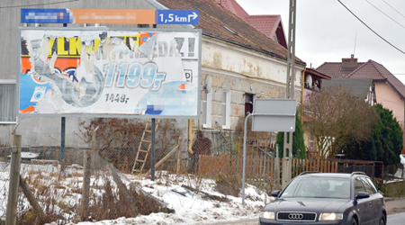 Przy ul. Konopnickiej zaraz za skrzyżowaniem z ul. Korczaka rozciąga się kompletnie pusta przyuliczna działka. Otoczona drucianą siatką, miejscami przygniecioną do ziemi i z bramą o drewnianym obramowaniem, wygląda jakby była z innej epoki. Cóż, można jednak na niej dostrzec element „nowoczesności”, czyli znak naszych czasów pod postacią okazałego baneru reklamowego. Niestety, jak reszta działki prezentuje się nadzwyczaj marnie, cały jest w strzępach, a spod jednej naddartej warstwy wyziera inna. Co ciekawe, zachęca do kupna aparatu fotograficznego już dawno nie produkowanego, i uwaga, w sklepie, który już nie istnieje.{/akeebasubs}