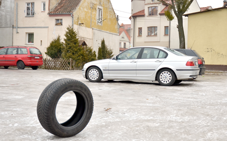 Stała samotnie pośrodku placu, nawet wyglądając dość dekoracyjnie na tle białej, bo oblodzonej nawierzchni. Nie wydaje się możliwe, aby ktoś zgubił taki przedmiot. Sądząc po zjechanym bieżniku, porzucono po prostu nieprzydatną rzecz. Niedawno pisaliśmy o nadzwyczaj bezczelnych śmieciarzach, którzy wysypali nieczystości na skraju szosy pod Leśnym Dworem, ale teraz mamy chyba rekord w tej dziedzinie – porzucenie zdezelowanej opony prawie w centrum miasta.