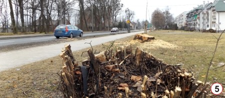 Formalnie od miesiąca trwają prace związane z budową ronda na skrzyżowaniu ulic Polskiej, Leyka, Wileńskiej i Piłsudskiego. Ta ostatnia, mająca jako patrona symbol odzyskania niepodległości, doczeka się gruntownej modernizacji akurat na 100-lecie przywrócenia Polsce wolności. Na razie w opisywanym rejonie widać jedynie efekty prac przygotowawczych. Osoby mieszkające lub pracujące przy ul. Piłsudskiego napotykają widok odmienny od tego, do którego były przyzwyczajone przez lata. Znikły praktycznie wszystkie drzewa i krzewy znajdujące się nie tylko w skrajni jezdni, ale i te, które rosły po drugiej stronie chodnika (fot.5). Pozostawiono jedynie rachityczne jeszcze drzewka posadzone niedawno. Częściowej wycinki doczekał się nawet drzewostan przy pobliskim kościele i przedszkolu. Przebudowa obejmie końcowy odcinek ul. Polskiej (mniej więcej od skrzyżowania z ul. Krzywą), przyległe do ronda fragmenty ulic Leyka i Wileńskiej, a zmodernizowaną trasą kierowcy pojadą w stronę Ostrołęki nieco ponad kilometr. Będzie okazja do poprawienia jakości podłoża i asfaltu, bo na razie nawierzchnia w paru miejscach wyraźnie deformowała się w wyniku nacisku cięższych pojazdów czekających na światłach (fot.6).