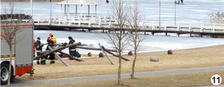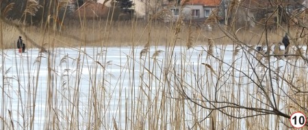Taki oto obrazek zarejestrowaliśmy w miniony weekend (fot.10). Widać tu fragment Jeziora Dużego Domowego. Co ciekawe, w niedużej odległości od widocznych na zdjęciu miłośników wędkowania i nadlodowych spotkań swoje ćwiczenia mieli strażacy (fot. 11). Czyżby widoczni w głębi zdjęcia panowie (ci sami, których pokazuje poprzednia fotografia) liczyli, że w przypadku nieszczęścia zostaną błyskawicznie uratowani?