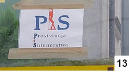 Niektórzy bez polityki wytrzymać nie mogą. Na szczycieńskim przystanku ZKM przy ul. Kościuszki wisi sobie (choć tam wisieć powinny tylko rozkłady) antyplakat również odwołujący się w zamierzeniach twórców do majowo-czerwcowych wyborów (fot. 13).