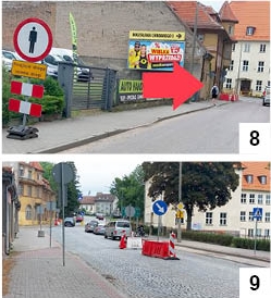 przybytku znajdowały się tu już wcześniej, ostatnio dodano informacje związane z odległością. Te, jak nam się skromnie wydaje, są nie do końca precyzyjne – choć ktoś próbował, by tak właśnie było. Na zakręcie ul. Klenczona wisi tabliczka mówiąca o 150 m (fot. 5) , potem jest tych metrów kolejno 100, 80 i 50, ale informacja z tabliczek ma się nijak do rzeczywistej odległości, która jest jednak mniejsza. A niekiedy chcielibyśmy dotrzeć w pewne miejsce jak najszybciej i bez dodatkowego stresu... Na fot. 6 zaznaczyliśmy strzałkami tabliczki znajdujące się od siebie rzekomo w odległości. 50 m.