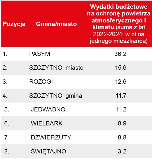 Gmina Pasym - najwięcej, a gmina Świętajno – najmniej łożą na ochronę klimatu. Tak wynika z najnowszego rankingu „Wspólnoty” obejmującego lata 2022-2024.