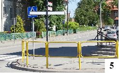 Jeśli nas pamięć nie myli, do końca maja powinny zostać wymienione tabliczki informacyjne z nazwami ulic i kierujące do pewnych obiektów. Informację o tym wciąż można znaleźć na archiwalnej stronie miejskiego serwisu. „Nowe oznakowanie miejskie będzie czytelne dla mieszkańców i turystów”- czytamy m.in. taki słuszny przekaz. Pomyśleliśmy wówczas sobie (to informacja z połowy kwietnia), że w paru punktach umieszczone zostaną tabliczki kierujące do naszych zrewitalizowanych ruin – w końcu jest się czym pochwalić. Jednym z takich miejsc jest np. zjazd z ul. Kościuszki w ul. Kasprowicza (fot.5) . Jak widać, żadnej tabliczki prowadzącej do zamku nie było. Nie widać natomiast, że skręcamy z ul. Kościuszki – tabliczki są wciąż niezmienione i całkowicie wyblakłe – tak było w miniony weekend.