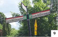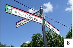 Jak powszechnie wiadomo, Maria Skłodowska-Curie też była kobietą, o czym przypomina pewien znany polski film. Jak się jednak naprawdę nazywała? Zaczęliśmy się zastanawiać nad tą kwestią, przyglądając się wymienianym tabliczkom z nazwami szczycieńskich ulic. Według nomenklatury ze skrzyżowania w pobliżu naszego Sanepidu nasza noblistka nazywała się i Skłodowska-Curie (fot. 8), i Curie-Skłodowska (fot. 9) . To dwa oblicza tych samych tabliczek. Podobnie rzecz wygląda na skrzyżowaniu przy przejeździe kolejowym, gdzie inna wersja widnieje od strony ul. Polnej.