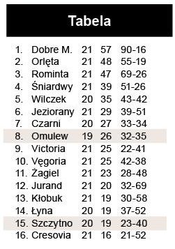 -Gra była dużo lepsza niż z Pieckami – przyznaje trener Omulwi Mariusz Korczakowski. – Sytuacji strzeleckich nie mieliśmy mniej niż gospodarze. Gra do przodu była całkiem, całkiem. Mieliśmy jednak problem z powrotem – zaznacza. Efektem była utrata dwóch bramek po kontrach gospodarzy.
