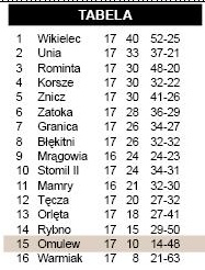 - Unia to bardzo mocna drużyna, z kilkoma doświadczonym zawodnikami. Nie jest dziełem przypadku, że zajmuje teraz drugie miejsce – ocenia rywali trener Omulwi Mariusz Korczakowski. - W pierwszej połowie graliśmy bardzo dobrze, ale nie mieliśmy farta – wielbarski szkoleniowiec odnosi się do sytuacji, w której jeden z obrońców Omulwi dość przypadkowo zagrał ręką w narożniku pola karnego, a sędzia podyktował jedenastkę zamienioną na bramkę. Gospodarze mieli w tej części meczu swoje sytuacje. Najdogodniejszą okazję zmarnował Przybyłek, który przestrzelił z 8 m.{akeebasubs !*}