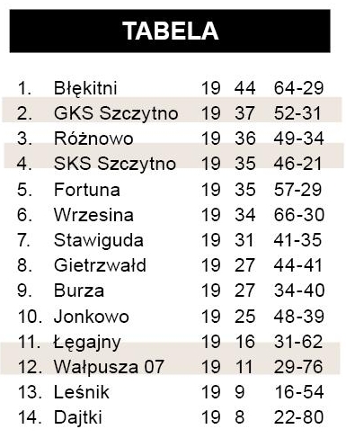 W poprzednich meczach Wałpuszy zawodził brak skuteczności. Tym razem była ona mocną stroną zespołu Cezarego Kucińskiego. W roli snajperów wystąpili Daniel Gleba i Mateusz Lech, którzy podzielili się łupem bramkowym. Inne zagrożone spadkiem zespoły przegrały i dzięki temu Wałpusza awansowała na nieco bezpieczniejsze miejsce w tabeli.