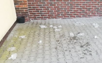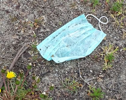 Maseczki prędzej czy później trzeba wyprać bądź wyrzucić. Niektórzy postępują z tym w wersji mocno na skróty i wyrzucają maseczki po prostu pod nogi (fot. 9). To w Szczytnie obrazek, niestety, nierzadki. Często też widujemy walające się na chodnikach jednorazowe rękawiczki, zwłaszcza pod sklepami (fot. 10). Czasem po prostu z koszy wywiewa je wiatr. Jak to się wszystko ma do przestrzegania zasad bezpieczeństwa i troski o środowisko? Nie tak dawno tyle się mówiło o unikaniu foliowych torebek etc. – i co z tego zostało?