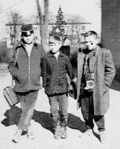 Z wielu zdjęć wybrałem trzy najciekawsze. Pierwsze z 15 listopada 1956 roku, gdzie stoi trójka przyjaciół: od lewej ja, Jerzy Piskorski i śp. Krzysztof Lipka. Ustawiliśmy się przy budynku sali sportowej SP nr 3. Za naszymi plecami, w oddali widać pierwszy budynek Spółdzielni Mieszkaniowej w Szczytnie, na ul. Chrobrego.