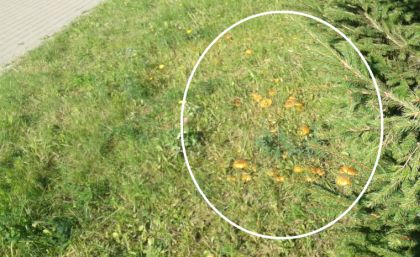 Na granicach dzieją się niekiedy ciekawe rzeczy – nawet jeśli mówimy tylko o granicy między miejscowościami. Sezon grzybowy w pełni, a więc w takich miejscach można spotkać np. grzyby – i to całymi stadami. Większość to wyglądające podejrzanie dla laika okazy (niekiedy spore) z blaszkami u dołu. „Kurek” widział ostatnio kilkadziesiąt maślaków, rosnących tuż przy chodniku w Lipowej Górze Wschodniej (fot. 4), kawałek za ul. Kętrzyńskiego. Ze względu na bliskość uczęszczanej drogi zrezygnował jednak z ich zerwania.